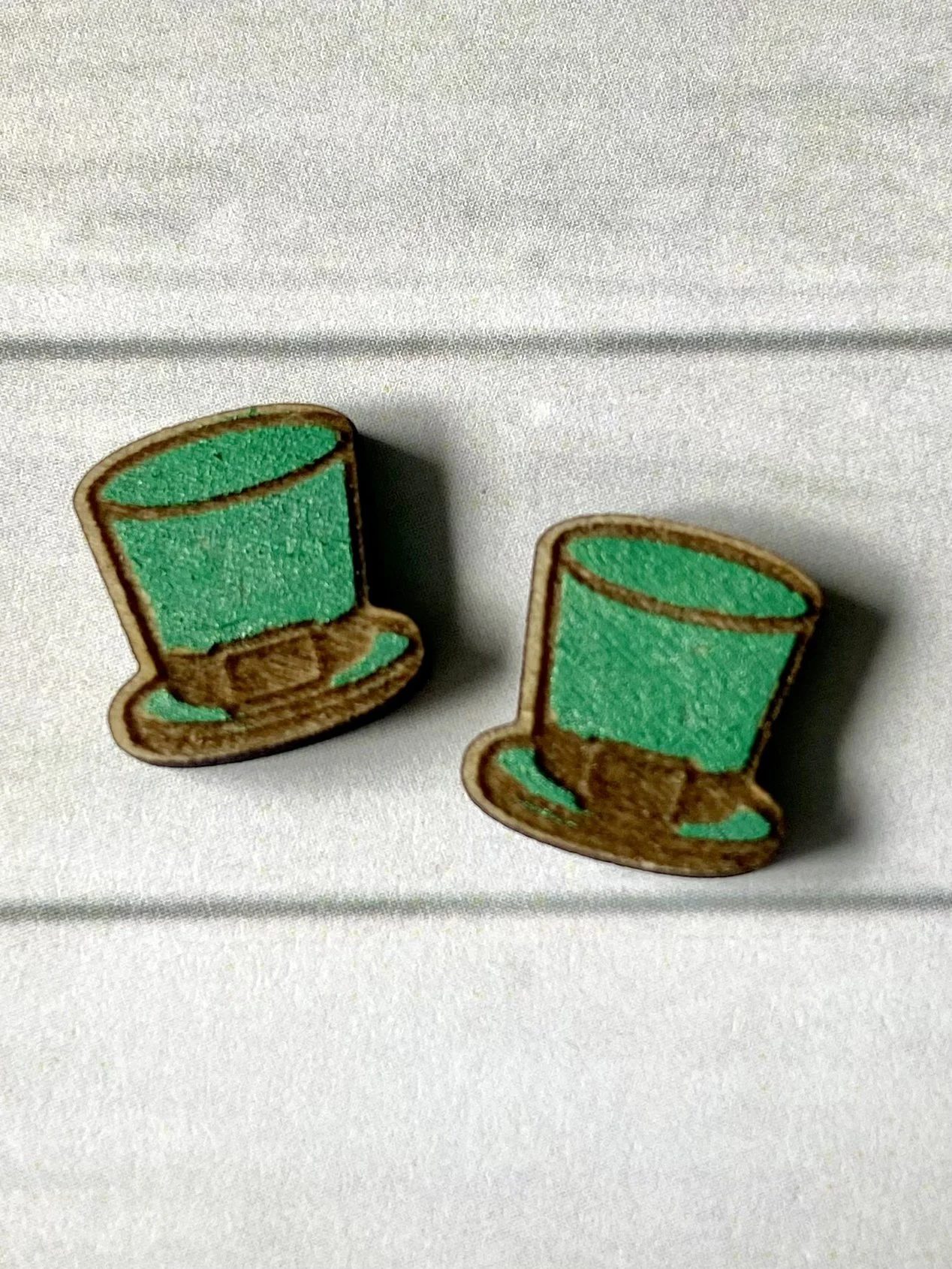 Hand-Painted Wood Leprechaun Top Hat Earrings